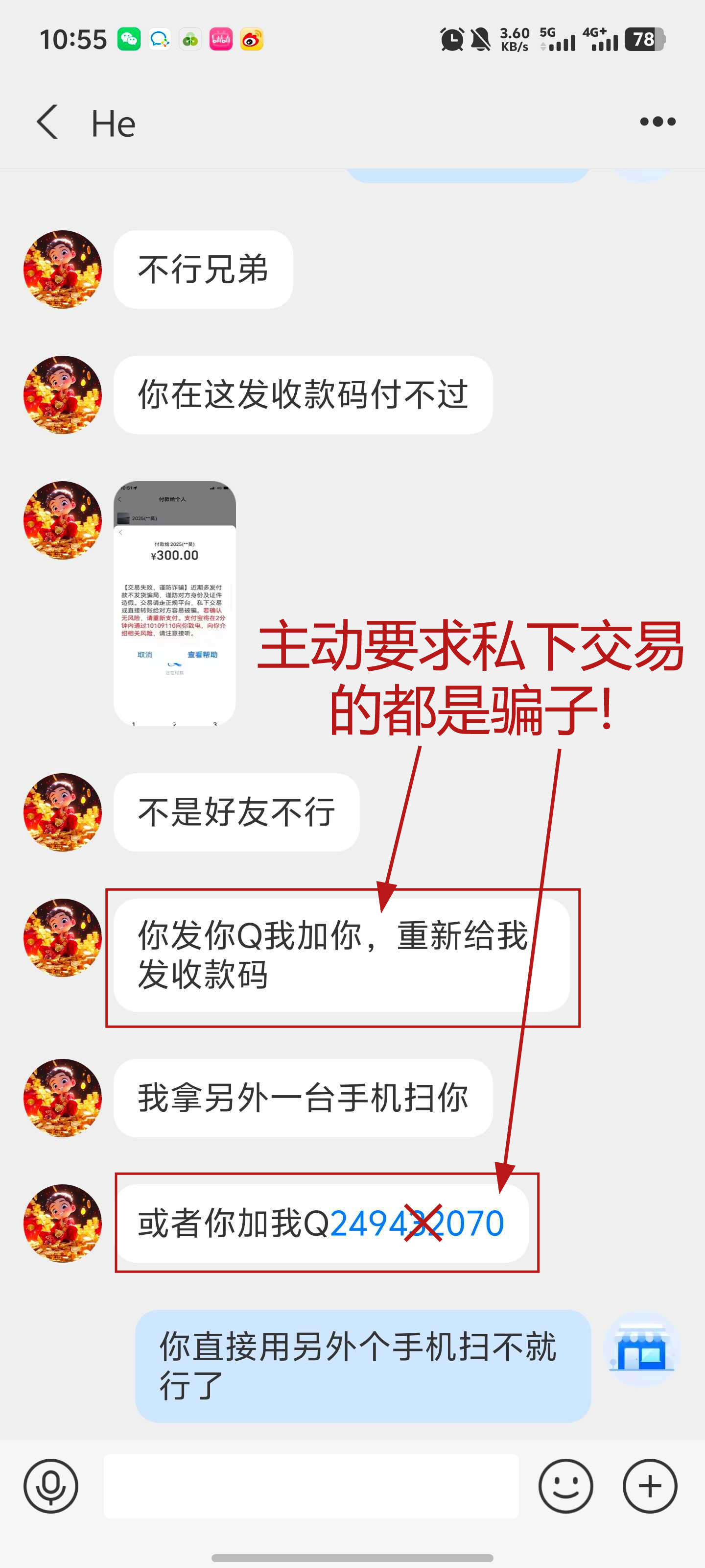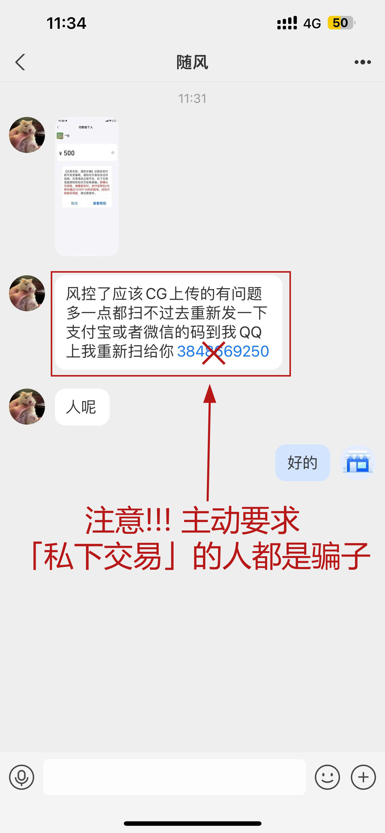 最常见的手法就是在 “聊聊“ 中加您好友,或是告诉您扫码无法通过,跟您要其他支付方式。