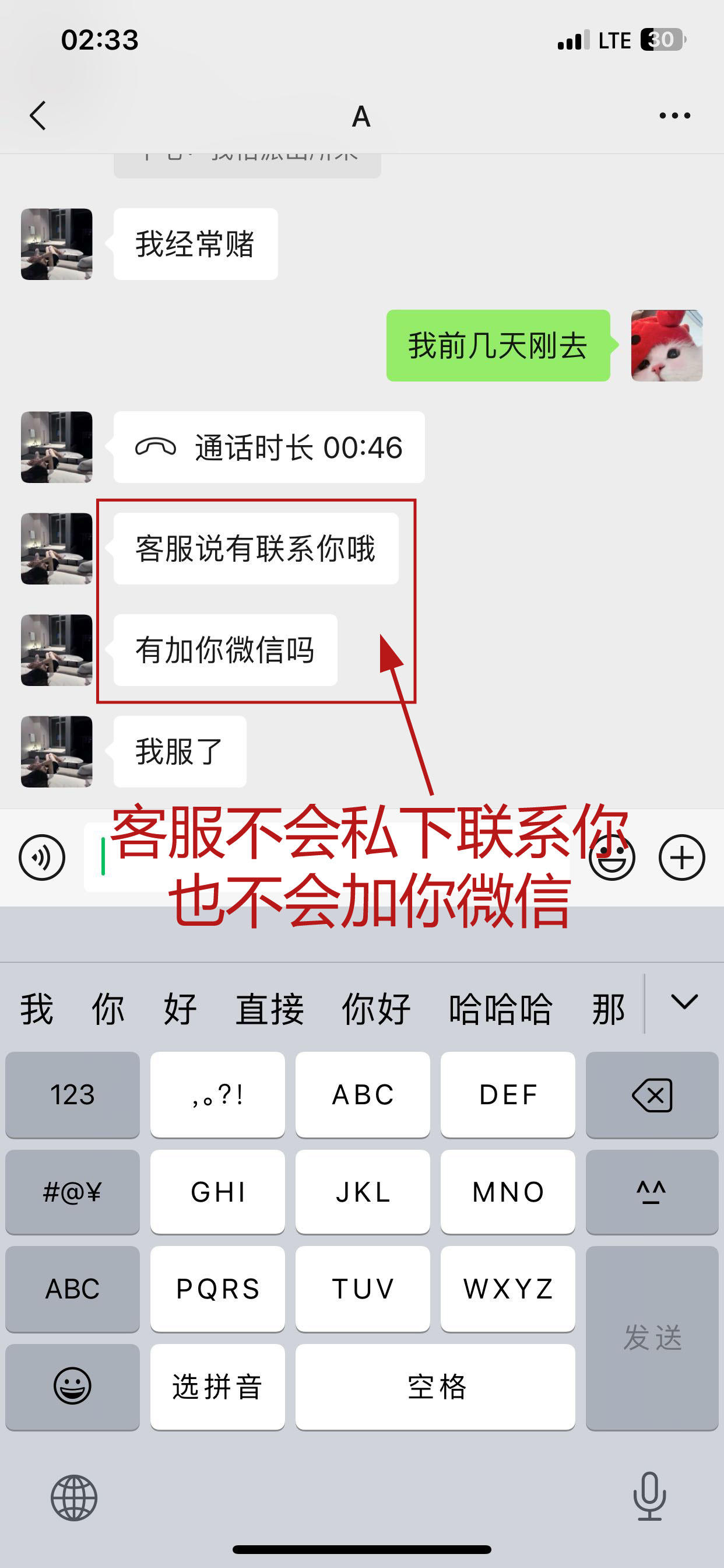 有些甚至会冒充官方进行诈骗(如下图所示)。若您收到此类留言,请 务必进入APP询问在线客服,切勿轻信!